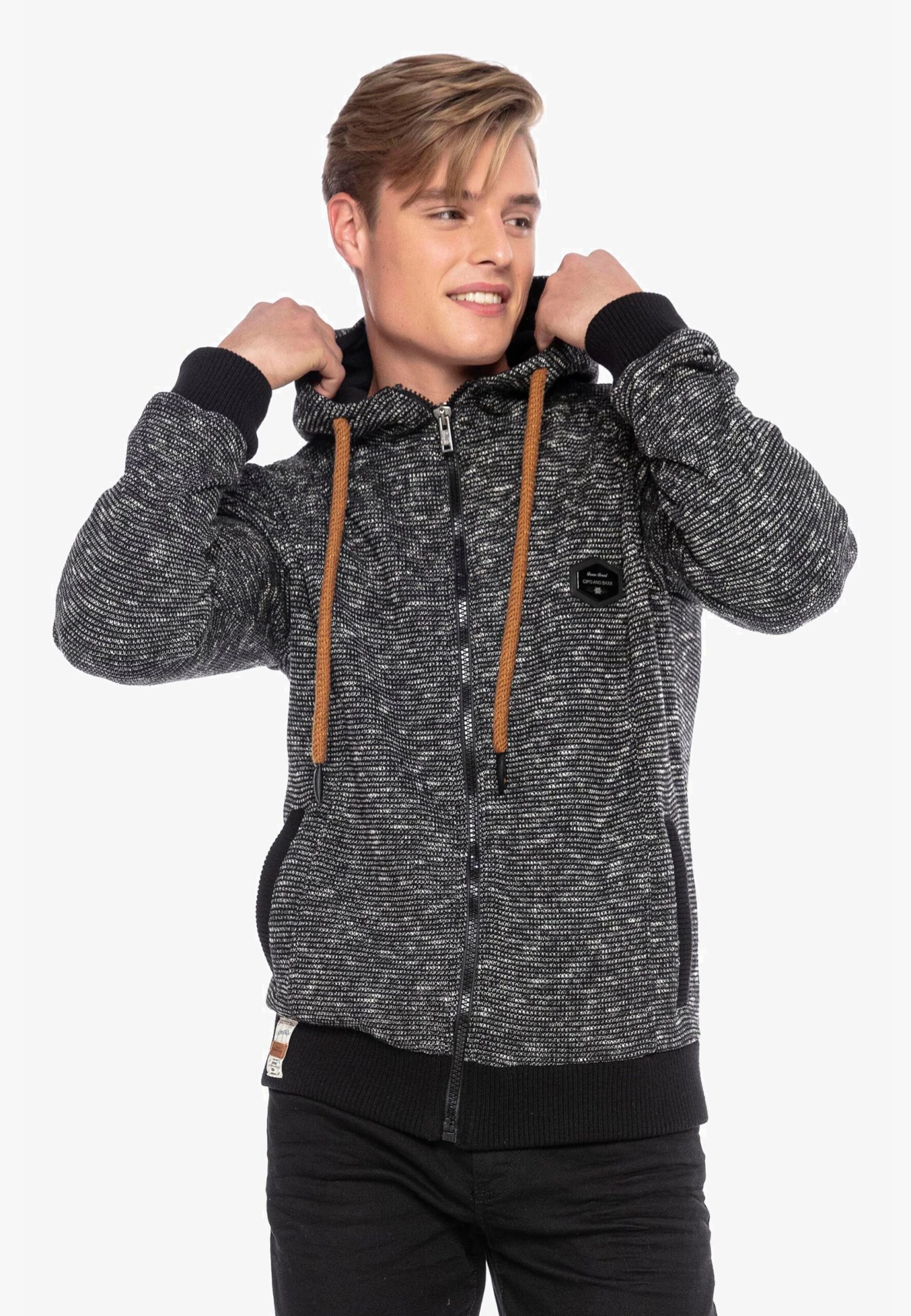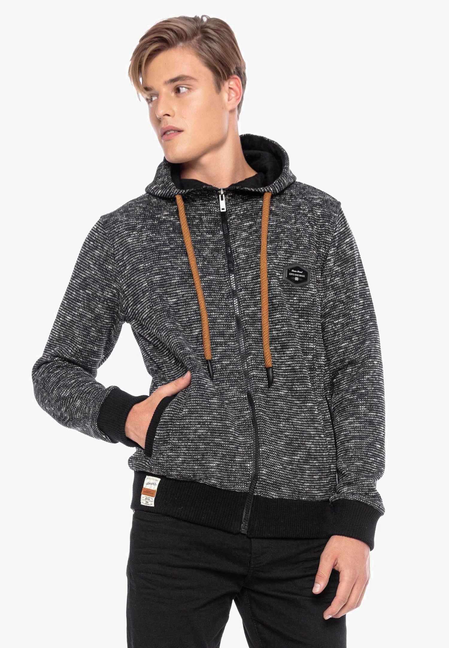 Cipo & Baxx Sweatvesten Met Capuchon Sweatvest Heren Zwart Gemêleerd