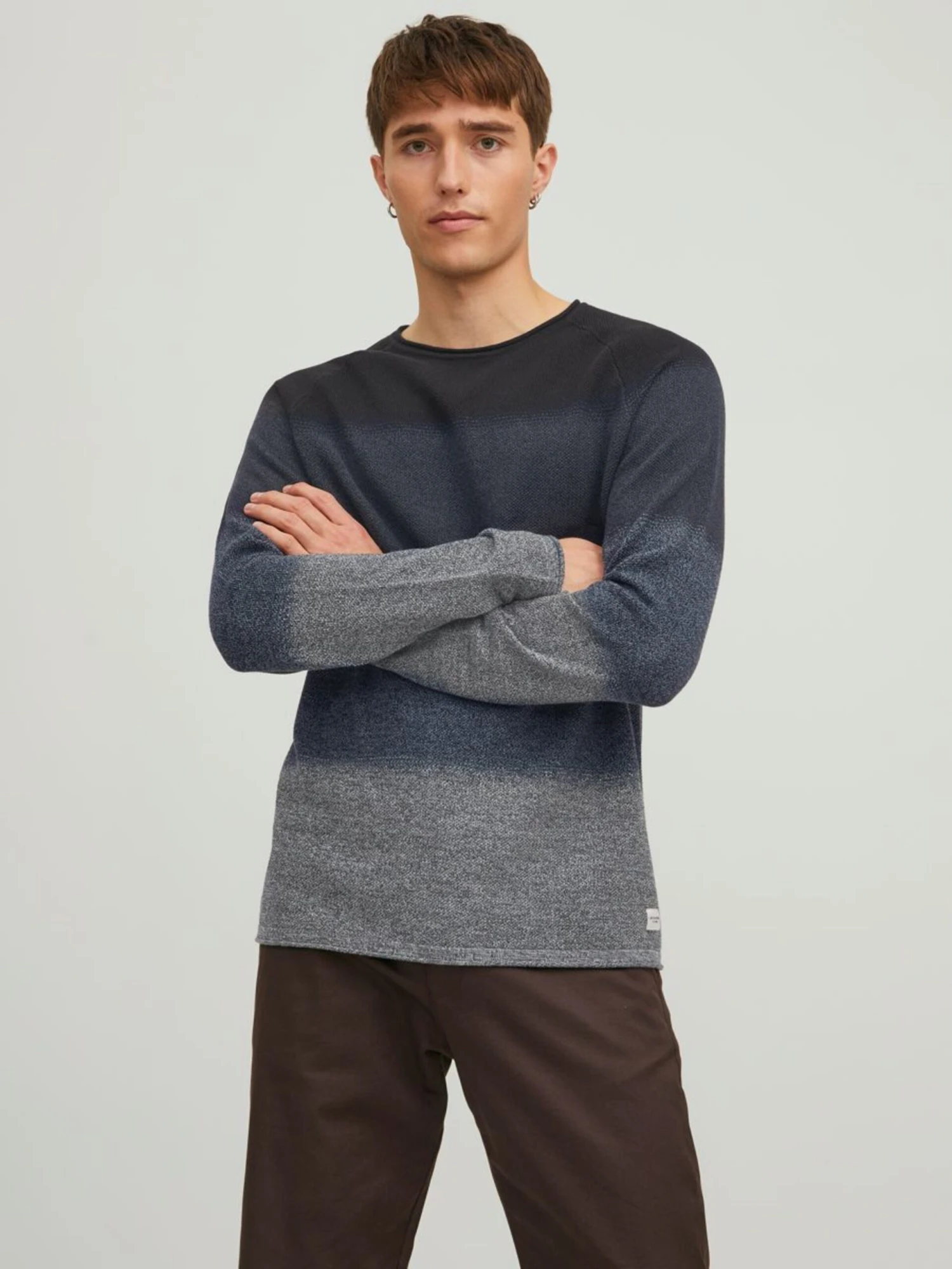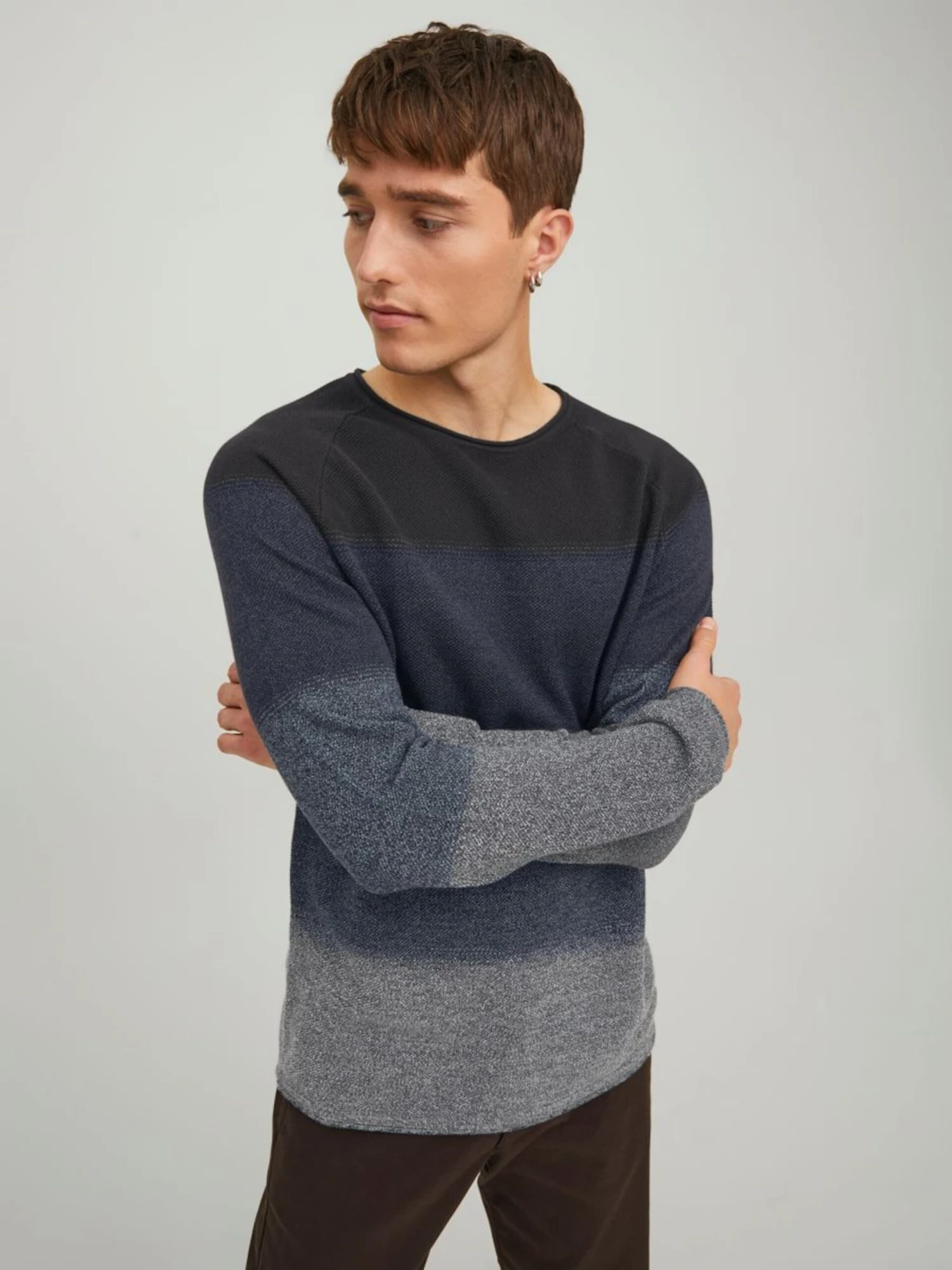 Jack & Jones Crewneck Truien Regular Fit Trui Heren Lichtgrijs / Donkergrijs / Grijs Gemêleerd